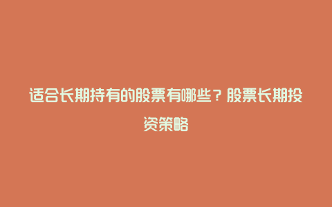 摘要:本文将详细介绍长期投资股票策略,以及适合长期持有的股票推荐,为读者提供背景信息和引起读者的兴趣。
