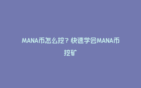 摘要:本文主要介绍了MANA币的挖矿方法及技巧,分别从矿池选择、挖矿软件、挖矿收益及风险等四个方面进行详细阐述,为读者提供背景信息并引发对此话题的兴趣。